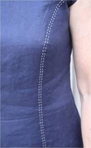 - Stitched from the armhole, lining the G foot guide along the princess seam and stitched all the way down both front princess seams, making sure that the stitches crossed the waist seam at the same point. This gave me a good reference point for the pickstitch.