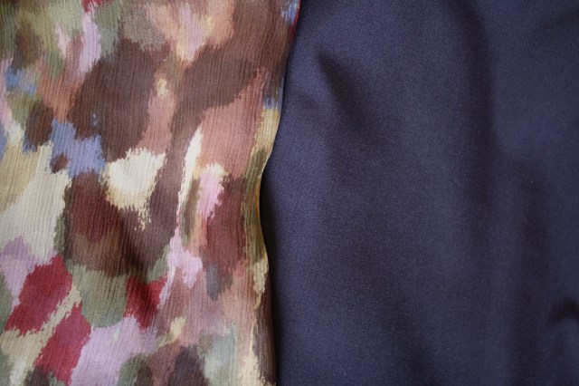 Here is my fabric, navy wool which was purchased from the Fabric Cave when my sister and I visited it last year before they moved to their new location at 112 Bowden Street, Meadowbank.  The crinkle georgette silk is from Tessuti purchased last Saturday specifically for the blouse or I have some tobacco silk crepe de chine that would work for the top as well as the lining for the jacket, now that is a thought!
