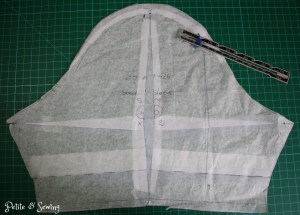 The reviews of the pattern over at Pattern Review say it is a snug fit and seeing I was inbetween the XS and SM sizes I decided to play it safe and cut out a size SM and did the following pattern adjustments: